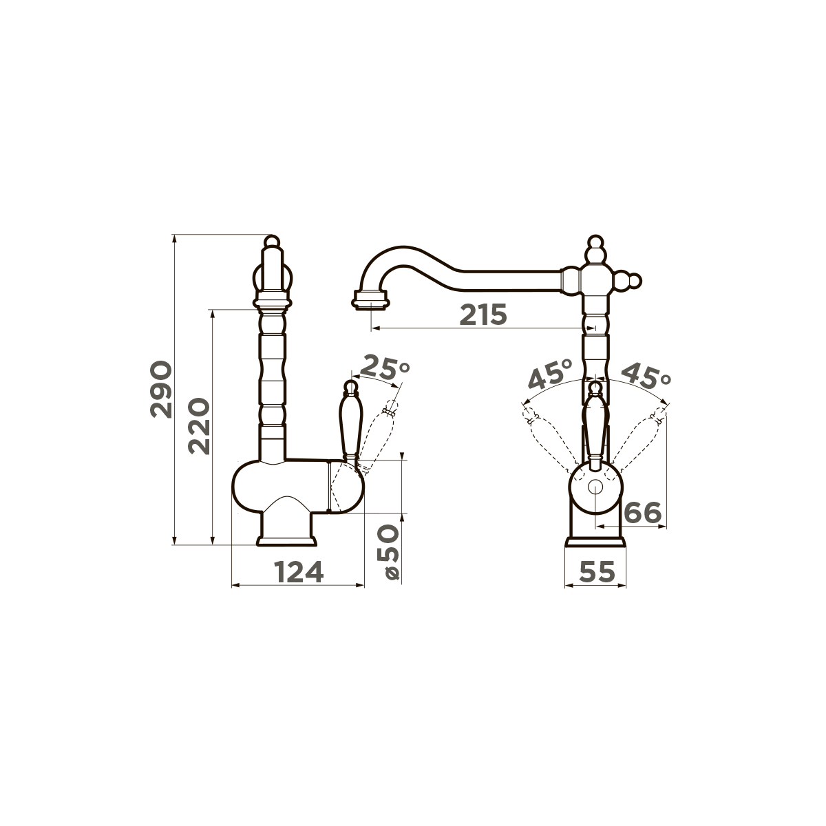 • Классический дизайн и удобство использования благодаря высокому изливу;