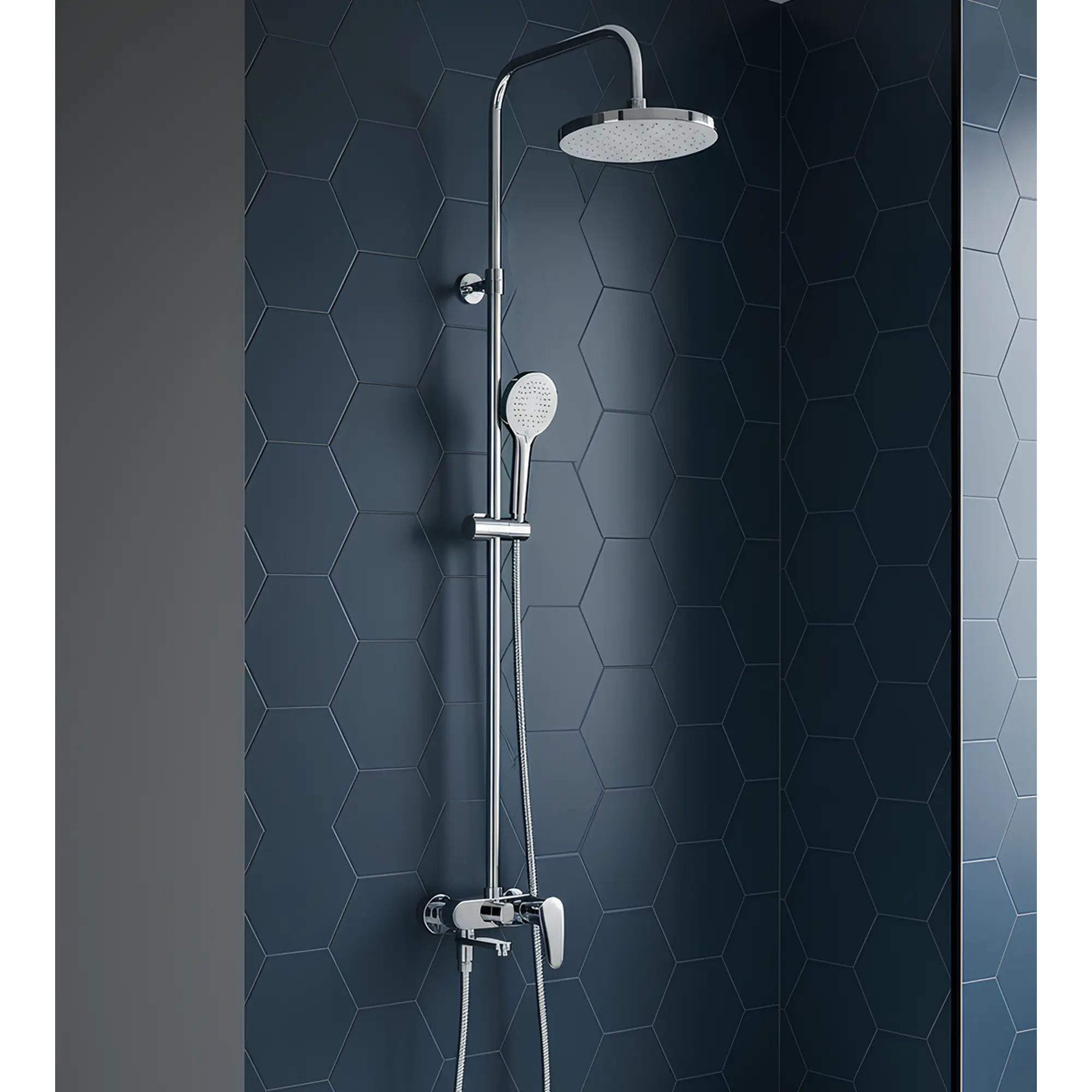 Душевая система хром со смесителем — это элегантное и функциональное решение для вашей ванной комнаты, которое подарит максимальный комфорт и сделает процесс принятия душа особенно приятным. Представленный душевой комплект для ванной комнаты оснащен тропическим душем и снабжен гарантией на 10 лет, что подтверждает его высокое качество и долговечность. Хромированная поверхность изделия придает ему современный и стильный вид, а сертификат качества гарантирует соответствие всем необходимым стандартам. Тропический душ подарит вам ощущение расслабления и свежести, создавая эффект мягкого и равномерного дождя прямо у вас дома. Выдвижная телескопическая стойка выполнена из нержавеющей стали с хромированным покрытием, обеспечивая надежность и эстетическую привлекательность.