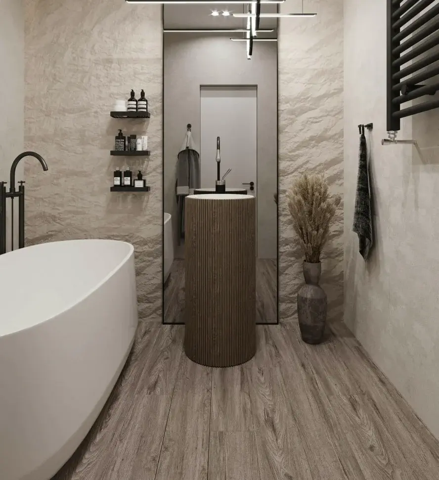 Преимущества этого ламината включают 4-х стороннюю фаску, которая придает полу элегантный вид, а также имитацию поверхности под дерево. Он также подходит для стен и пола.