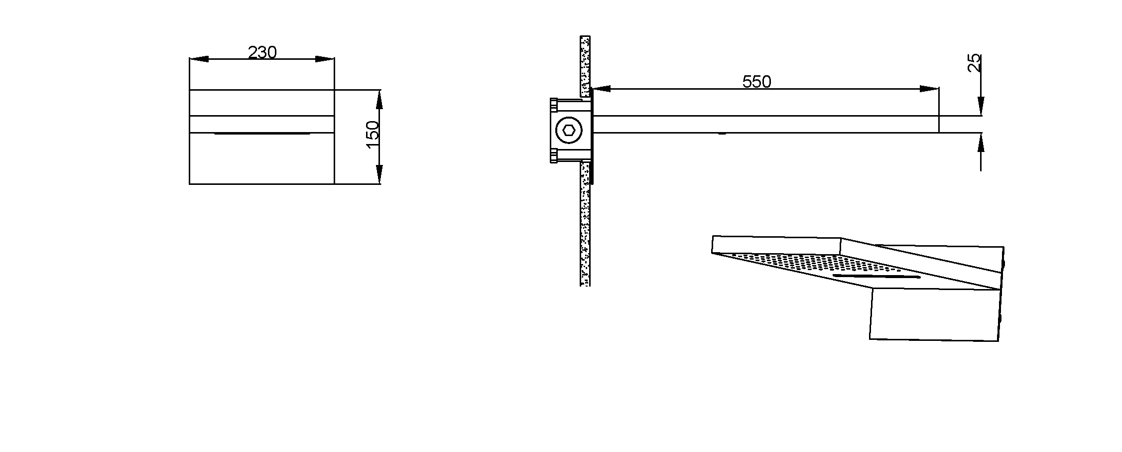 230 x 550 x 25 мм.
