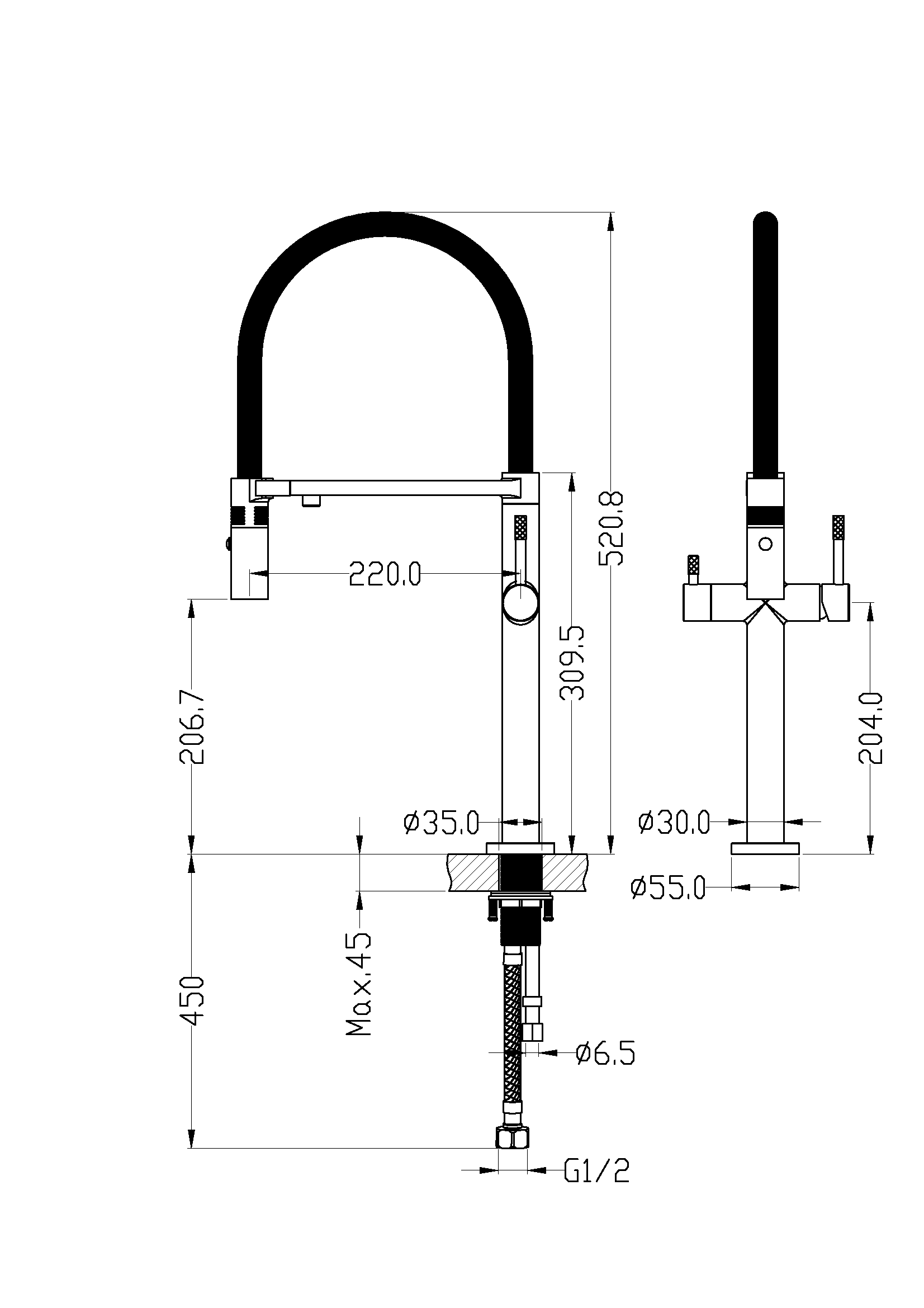 55 x 280 x 521 мм.