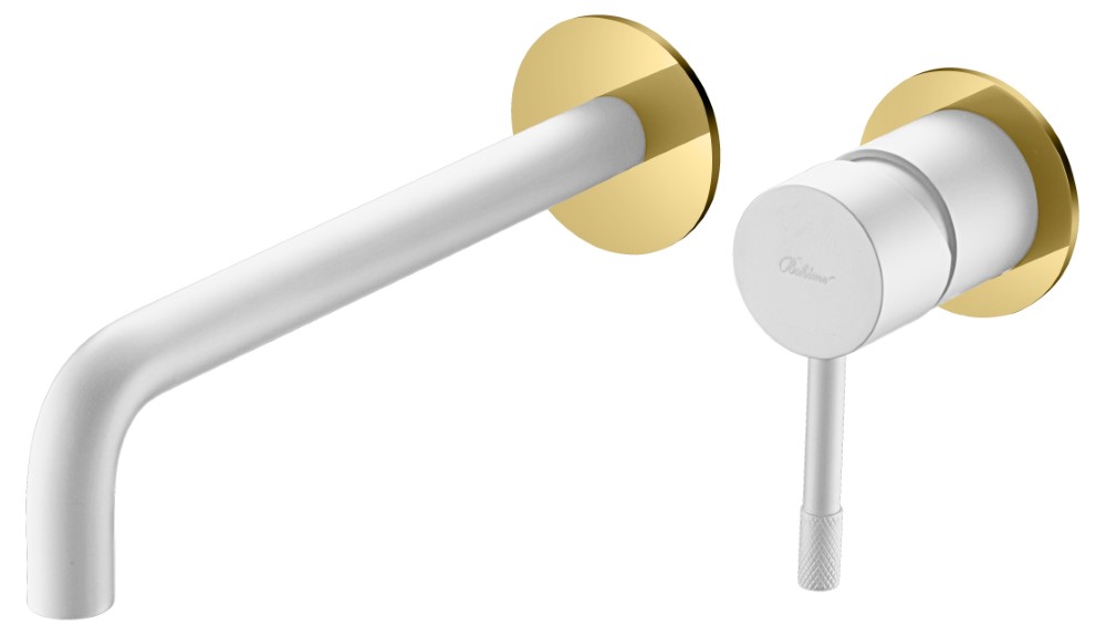 Смеситель для умывальника из стены, Uno. Белый Золото