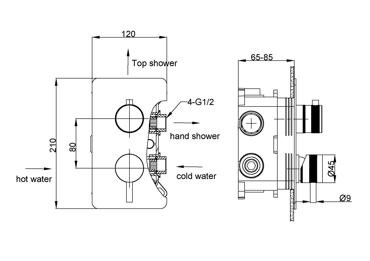 120 x 210 x 65 мм.